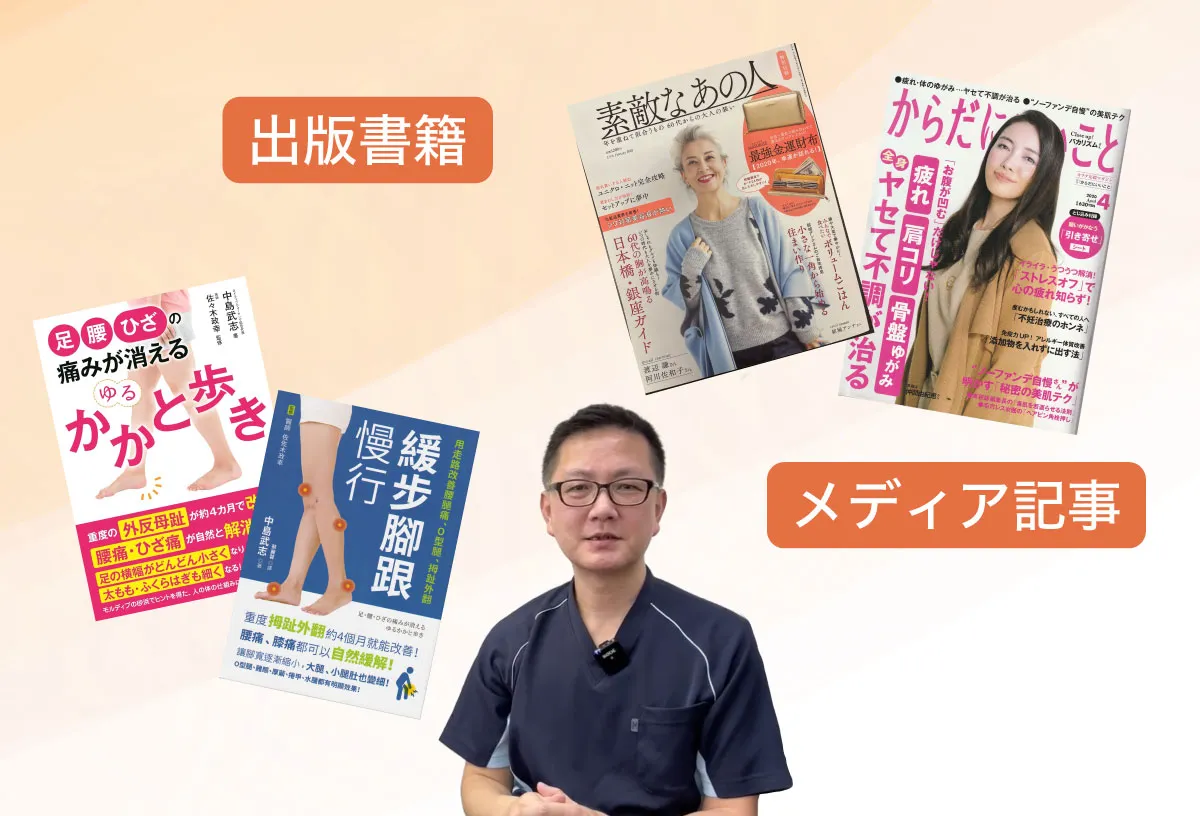 小さな違和感だった足の痛みが、時間が経つにつれて強くなり、歩くのすら辛くなります。 足元が不安定になることで、歩き方が変わり、腰や膝に負担がかかり始めます。毎日の仕事や家事で慢性的な腰痛や膝の痛みが続き、日常生活がどんどん辛くなります。 足のアライメントが乱れると、全身のバランスが崩れ、姿勢が悪化。立っているのも座っているのも疲れるようになり、体全体の不調を感じることに… 足の親指が曲がり、サンダルやヒールを履けなくなり、足元が気になって人前で足を見せることすら避けたくなります。好きな靴やファッションを楽しめなくなり、外出するのも億劫に…。 当院では外反母趾の一時的な痛みの緩和ではなく、根本的な改善へ導きます。外反母趾の主な原因は、足のねじれです。足のねじれを取り除く整体施術と、正しい歩き方を指導することで、外反母趾を根本から改善します。 当院では、大学病院でも導入されている医療用測定器を使用して、外反母趾の状態を正確に測定します。 足の専門家としてYoutube登録者数13万人を誇る中島武志が監修。米国足学理論に基づき独自の治療法を開発。サントリーウェルネス株式会社から依頼され歩行指導動画も監修。 足が痛くて演奏活動に支障をきたし、さまざまな治療院に行きましたが全く良くならないどころか、むしろ悪化。そんな時に中島先生のことを知りました。今では痛みは激減し、ヨーロッパの堅い石畳を長距離歩いても、何とかやっていけています。本当に助かりました! (施術効果には個人差があります) 長年足の問題に悩まされていたのですが、その変化にビックリ。もっと早くに出会えていればと思わずにいられません。生徒さんにも紹介していますが、足の変化が姿勢などにも影響するようで皆さんのギターの上達まで加速しています! (施術効果には個人差があります) 徹底的な改善を実現するため、お仕事中の姿勢や普段はいている靴、これまでのスポーツ経験やケガの履歴まで、20を超える項目について詳しくお伺いいたします。 医療用測定器「フットルック」で測定。親指や小指の状態はもちろん、足の圧力分布や土踏まずの状態など、あなたの足の問題を、様々な角度から全て明らかにします。 足の状態の悪化は、足が支える全身の状態にも影響します。すでにどれぐらいの影響がどの範囲まで出ているのかを、姿勢測定アプリを使用し測定し詳細に解説します。 足の形に問題がある方は、ほぼ必ず全身に影響が出ています。なのでそれを改善するため短時間で大きな効果をもたらす整体施術を施します。また簡単に正しい立ち方の指導もいたします。 以上の各種測定や実際のお体を確認したことを踏まえて、「いつまでに」「どれぐらいの」改善が可能か、その日のうちにお伝えいたします。